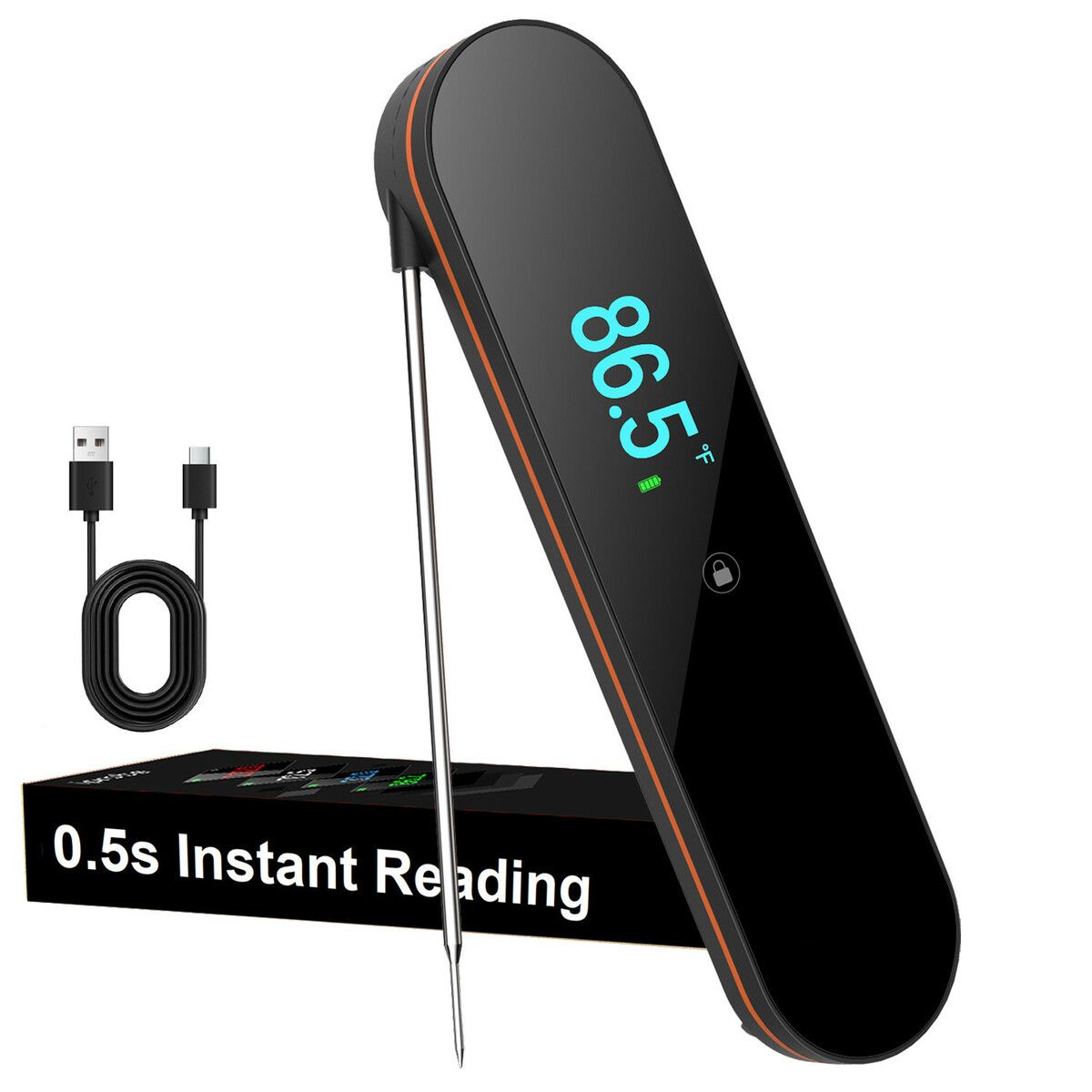 0.5s Ultra Fast Instant Read Meat Thermometer,TFT Color Screen,IP67 Waterproof,Rechargeable