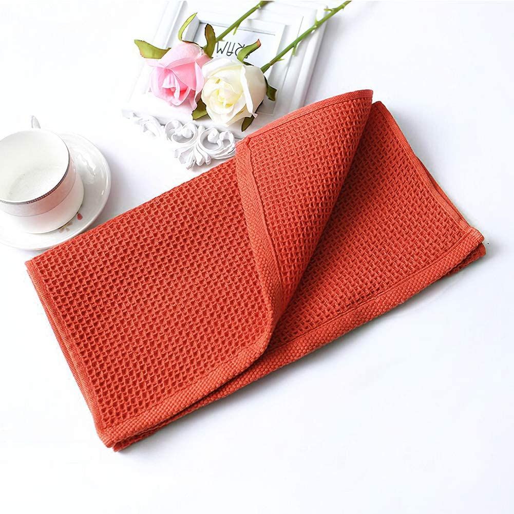 100% Cotton Waffle Weave Kitchen Dish Towels, Ultra Soft Absorbent Quick Drying Cleaning Towel, 13x28 Inches, 4-Pack, Brick Red