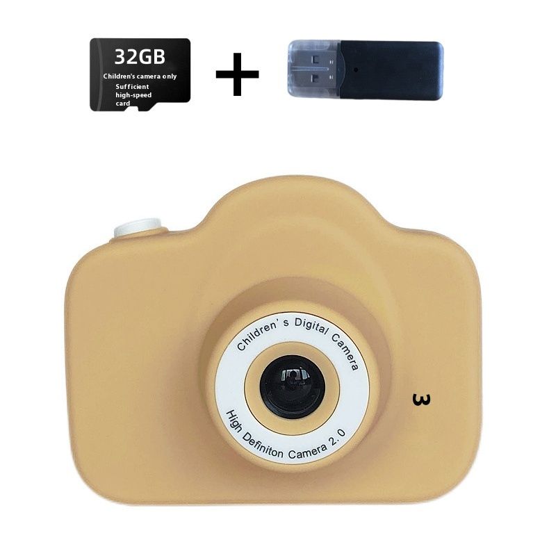 1080P khaki Mini Kids Digital Camera Dual Lens 2 Inch IPS Screen Cute Photo Frames Games with Neck Strap Ideal Birthday Gift