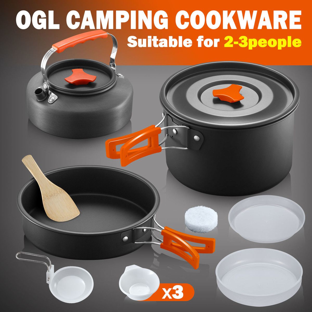 10pcs Camping Cookware Set Cooking Pot and Pan Nonstick Nontoxic Outdoor Campfire Tableware Aluminium Cutlery Utensils Kit