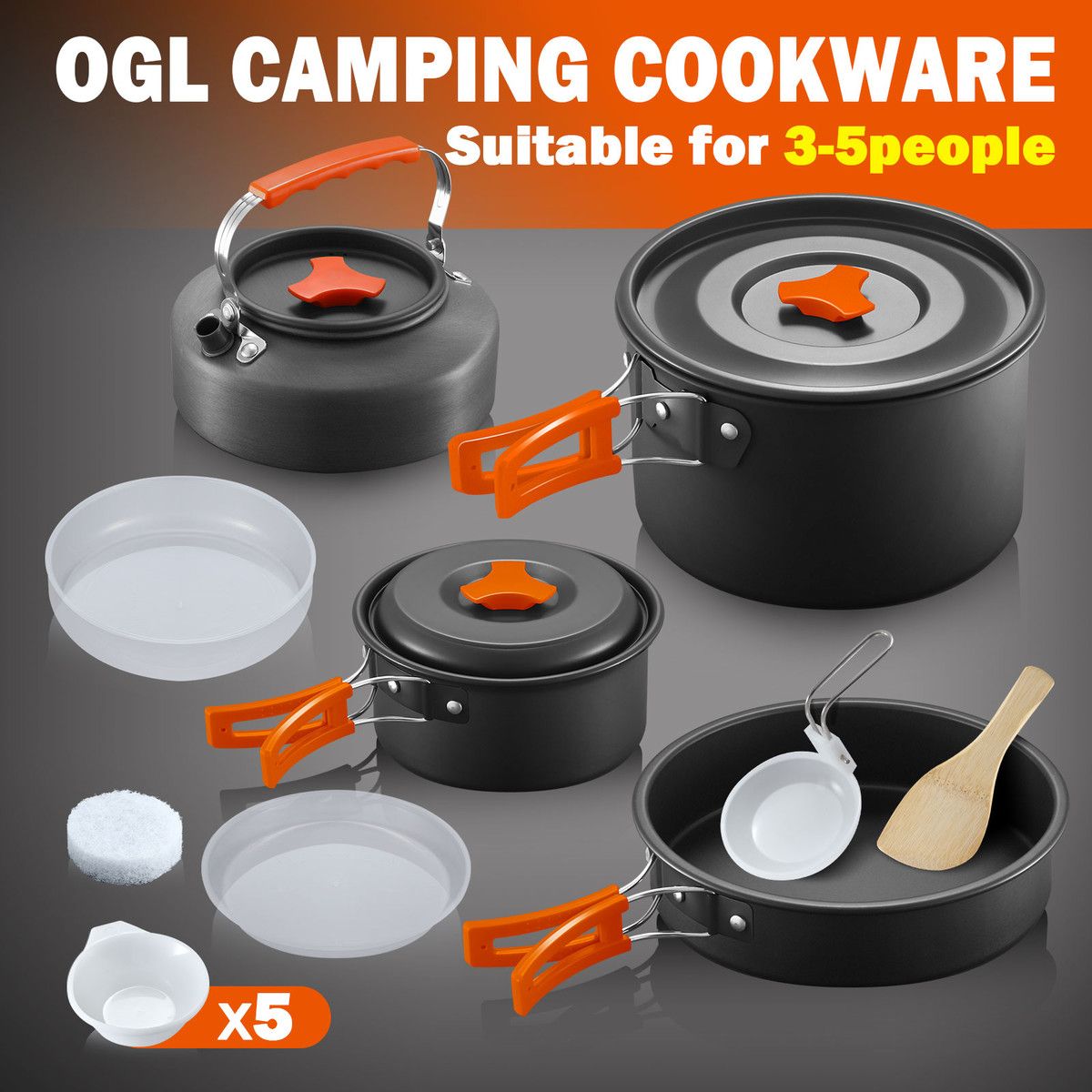 16pcs Camping Cookware Set Nonstick Cooking Pots and Pan Non-toxic Cutlery Tableware Outdoor Campfire Aluminium Utensil Kit