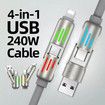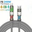 240W 4-in-1 USB C Super Fast Charge Cable With Breathing Light,Multi-Charging Cable Color Grey