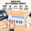 25 Key USB MIDI Keyboard Controller with 16 Backlit Pads,Professional Semi-Weighted Dynamic Bluetooth Keyboard,8 Knobs For Music Production Col White