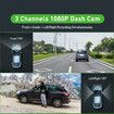 3 Channel 1080P Dash Cam Front and Inside Left/Right,Loop Recording,Triple Camera for Cars Parking Monitor,Wide Angle,IR Night Vision,with G-Sensor