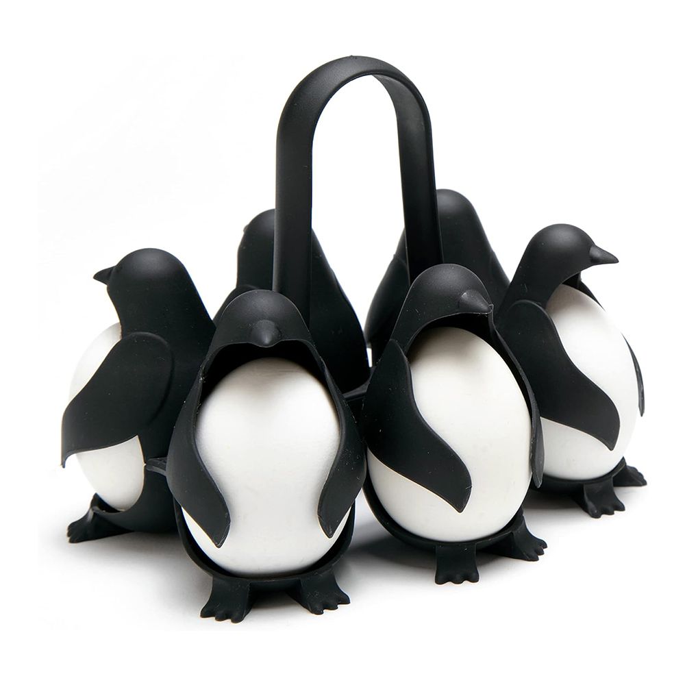 3-in-1 Egg Holder for Boiling, Storing and Serving, Penguin Shaped Poacher for Preparing Hard and Soft Eggs, Holds 6 Eggs for Boiling or Storing in the Refrigerator