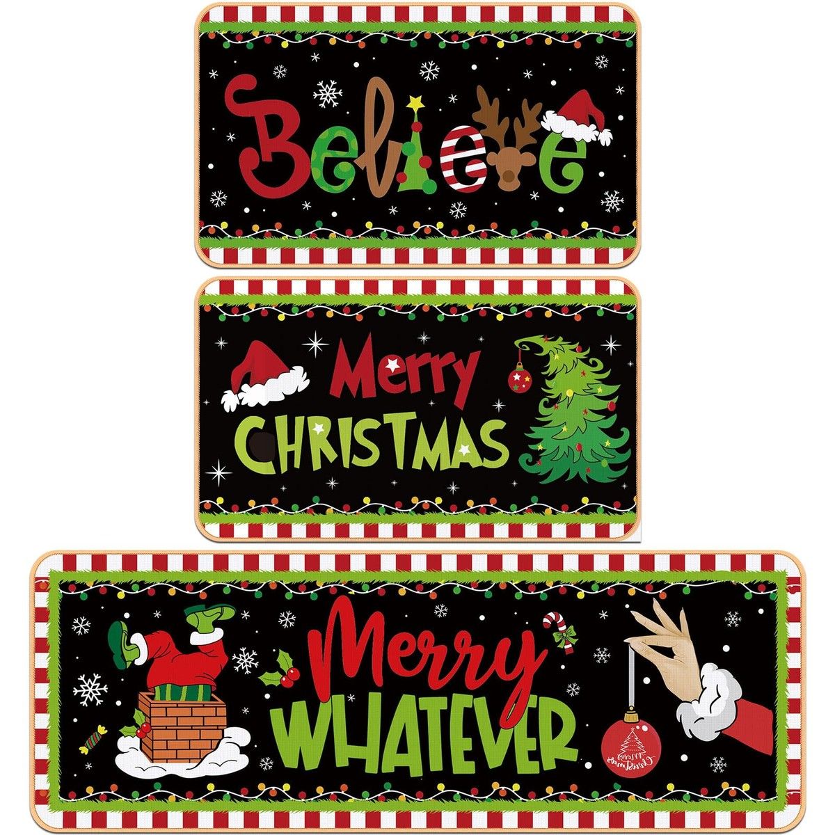 3 Pcs Christmas Kitchen Mat Washable Rug Non Slip Doormat Waterproof Farmhouse Holiday Kitchen Decor for Home Floor Office