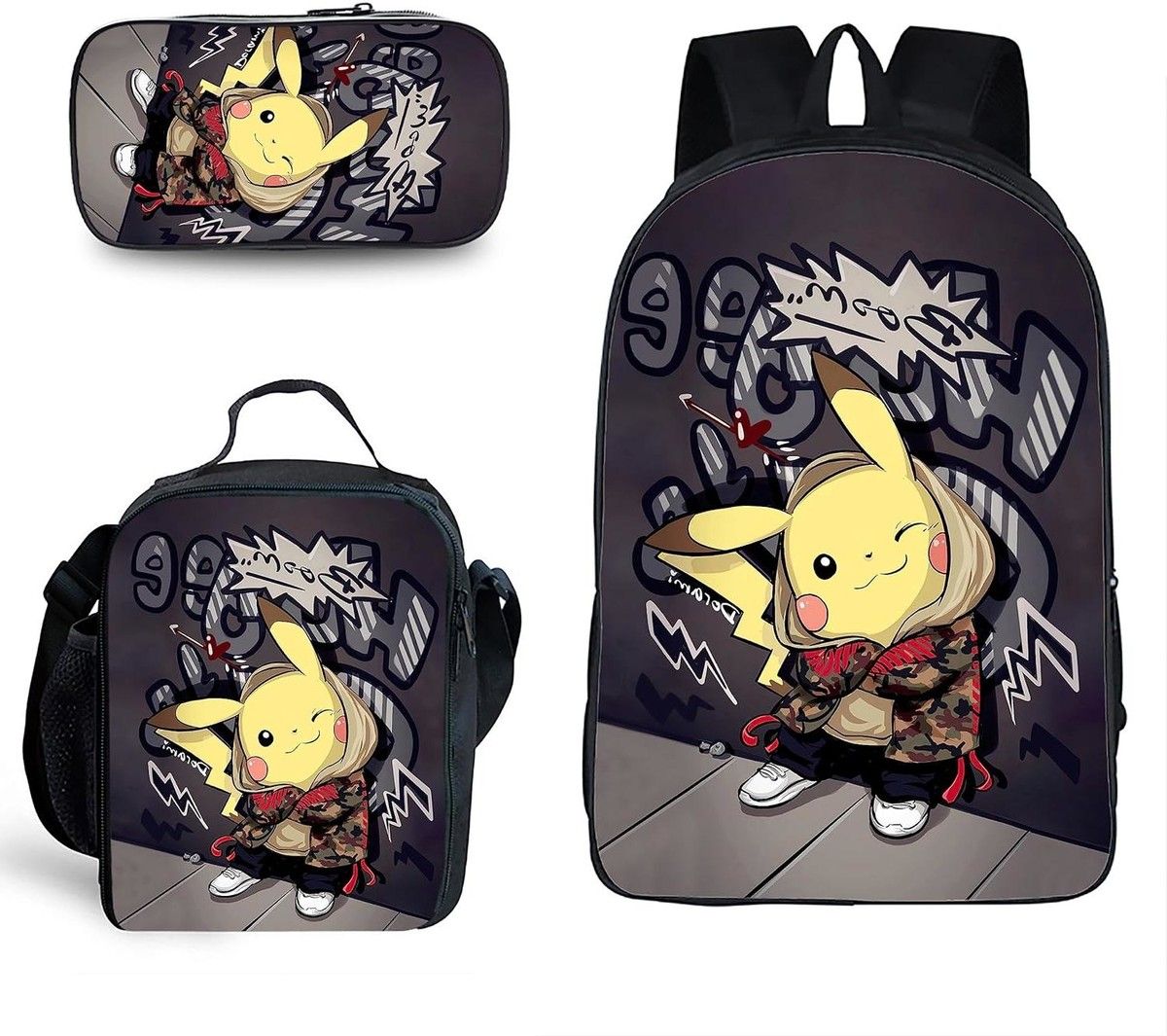 3-Piece Pokemon Cartoon Backpack Set: Travel Backpack,40cm Multi-Function Daypack,Large Capacity Shoulder Bag Perfect Gift Idea