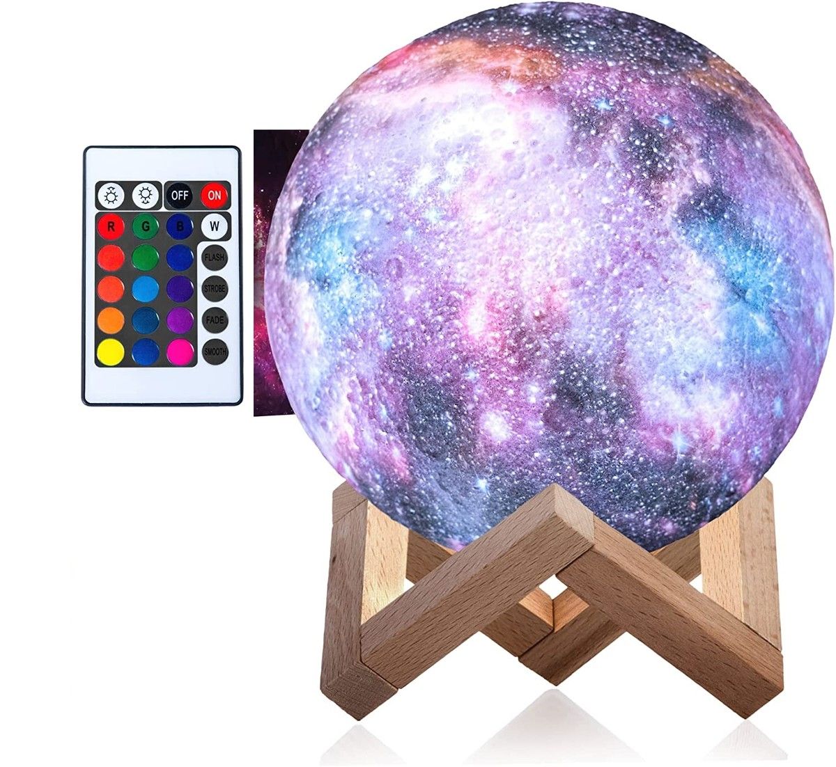 3D Galaxy Moon Lamp,Cool Night Light for Kids,12CM,16 Colors,Remote Control,Wood Stand - Space Gift for kids, Room Decor for Teen Girls - Pink Lava Lamp