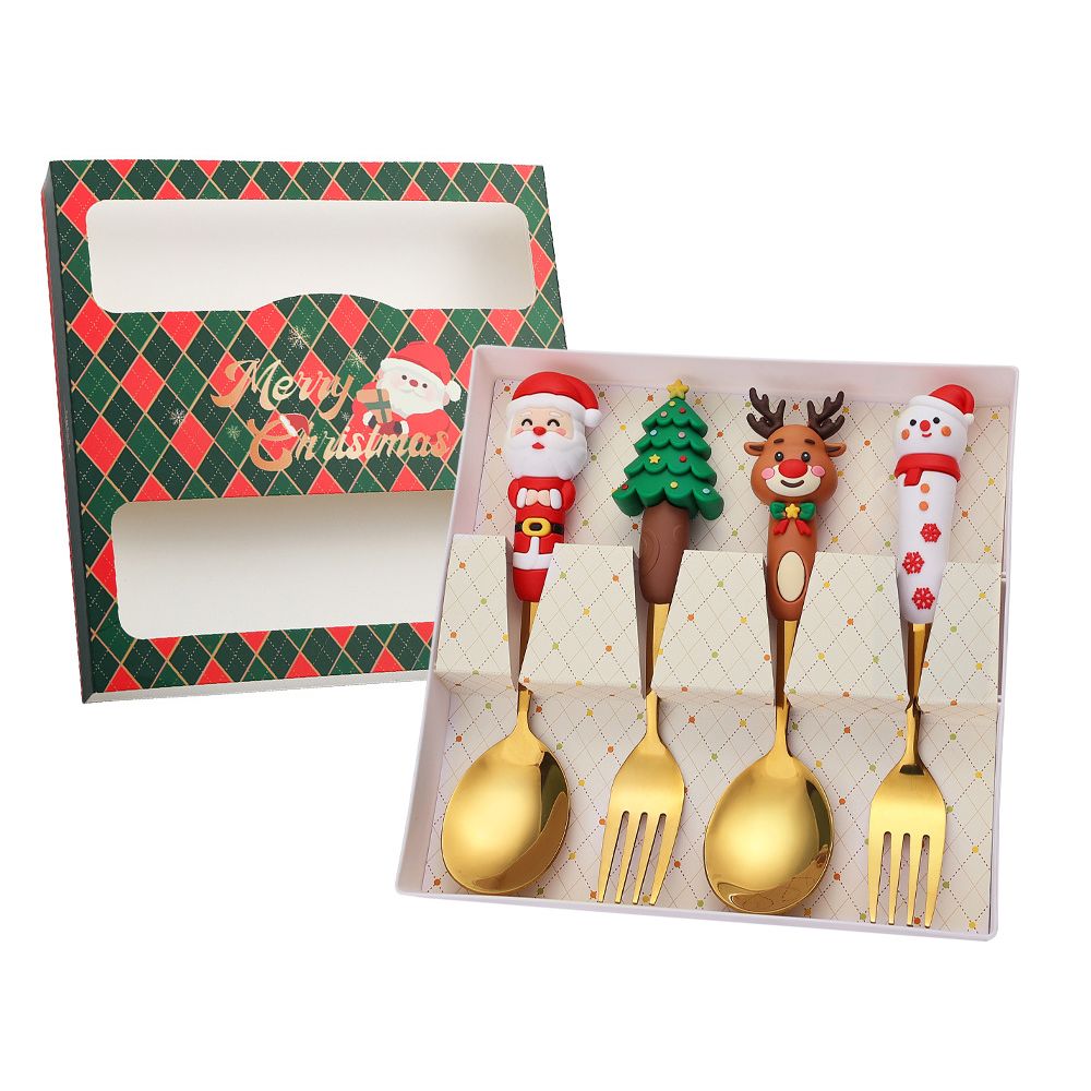 4 Pack Christmas Tree Doll Spoon Set Stainless Steel Dessert Forks for Holiday Parties and Gifts