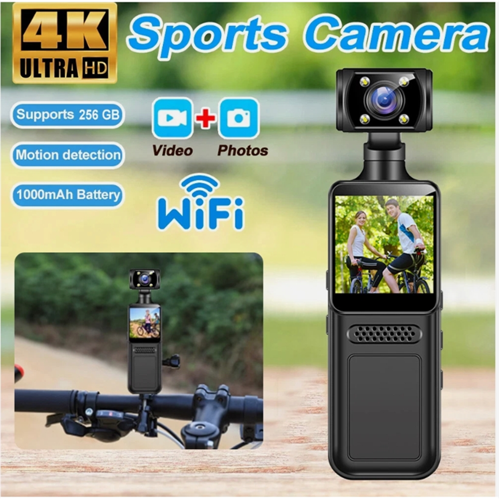 4K Action Camera Handheld Sports DV 1080P HD WiFi Camcorder Pocket Camera Video DVR Motor Cycle 180 Degree Rotatable with 32GB Card