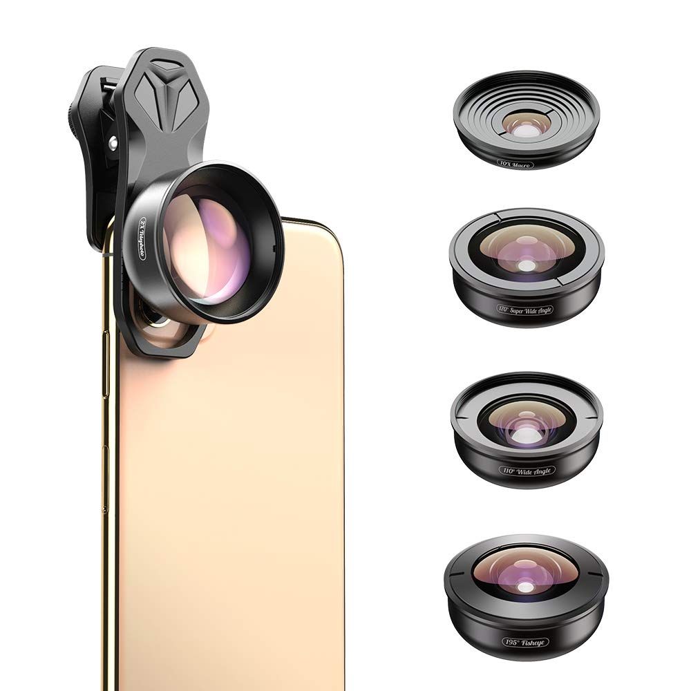 5 -in-1 HD Mobile Phone Camera Phone Lens Set-10x Macro Lens,2X Telephoto Lens,110°Wide Angle,170°Super Wide Angle,195°Fisheye for Smartphones