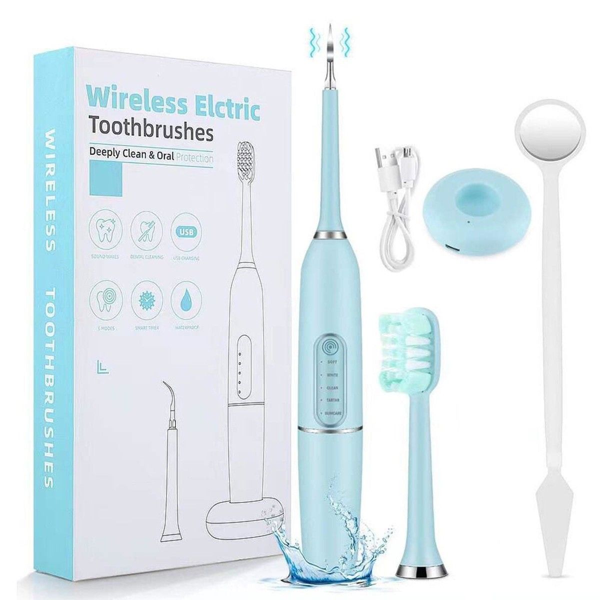 5-Mode Teeth Cleaning Toothbrush with Cleaning Tip, Toothbrush Head, and Dental Mirror
