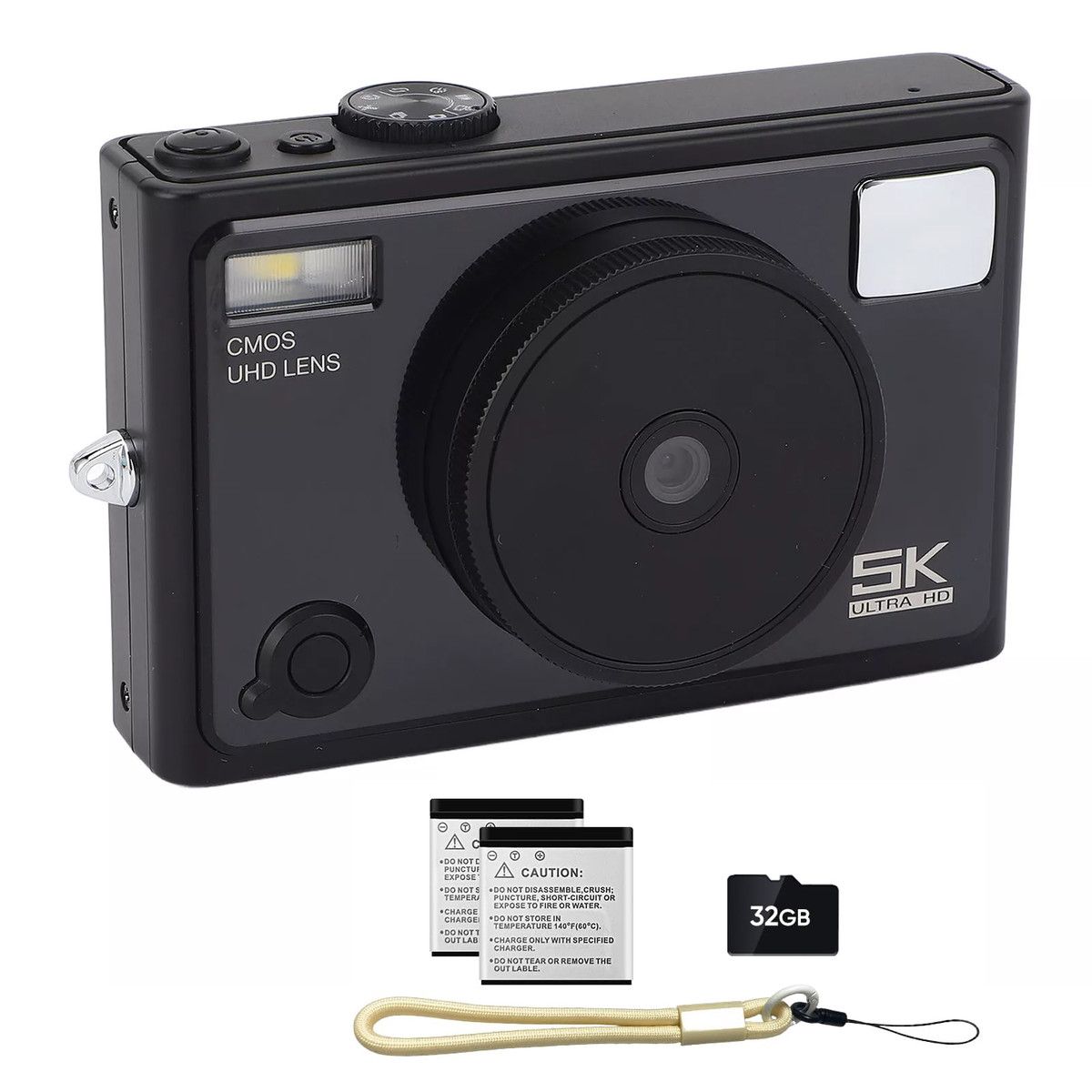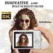 5K 64MP Compact Digital Camera,Dual Lens 2.8inch IPS HD Screen Autofocus Cameras,Large Flash Beauty Filter 18X Zoom Travel Video Vlogging Camera,Black