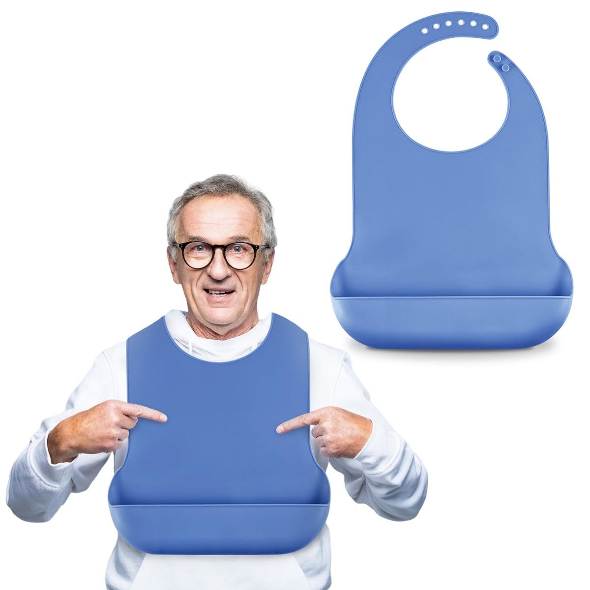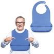 Adjustable Silicone Bib,Washable Bib for Men & Women,Waterproof Bib for Elderly with Crumb Catcher (Blue)