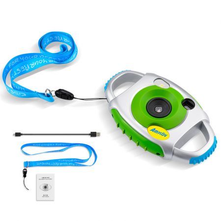 AMKOV Mini Camera Creativity Neck Camera Photography for Cute Kid Portable 5MP HD Camera Support Speaker Recording