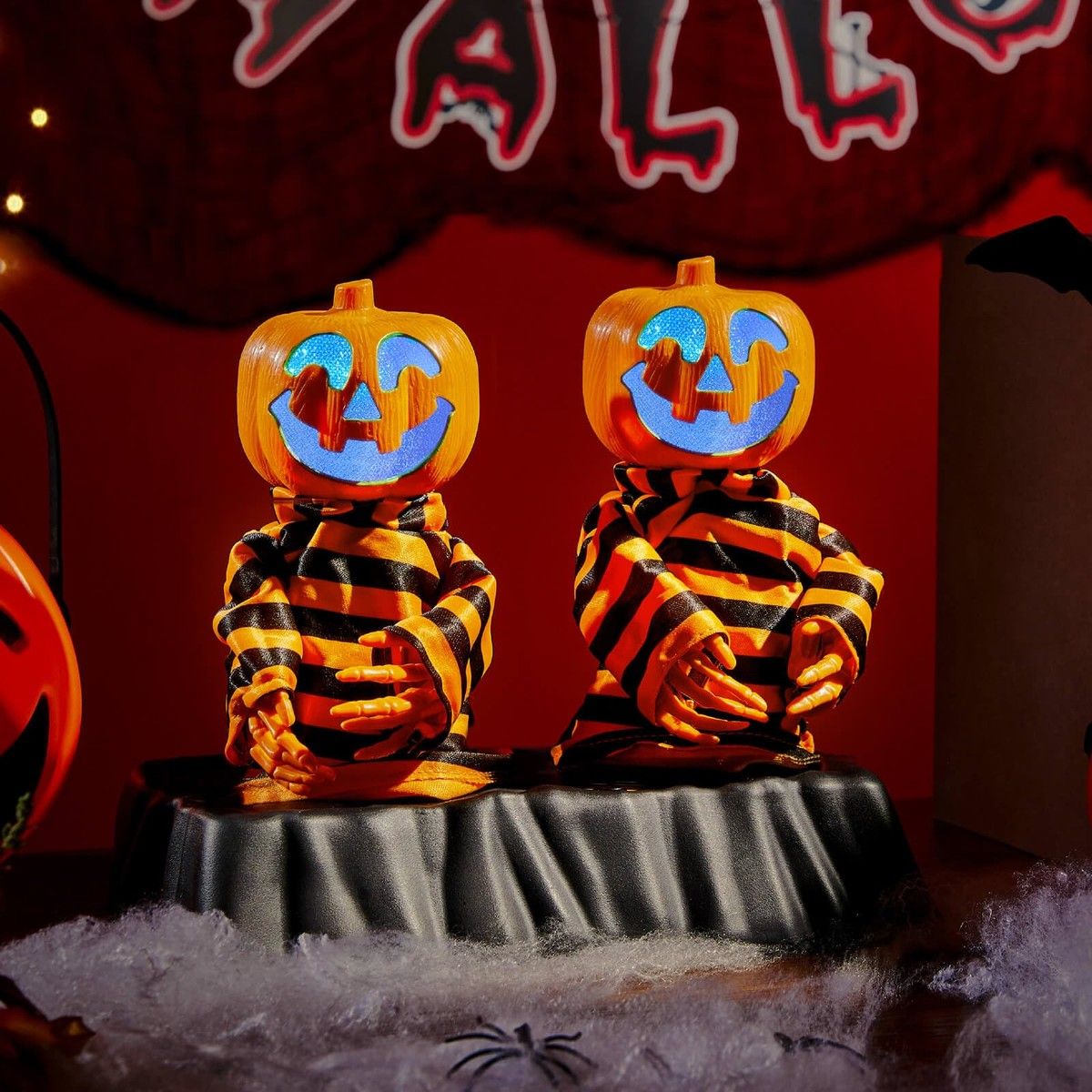 Animatronic Halloween Decorations,Screaming Indoor Table Decor with Pumpkin Spooky Jukebox,Dancing Pumpkin Man in Stripes Halloween Party
