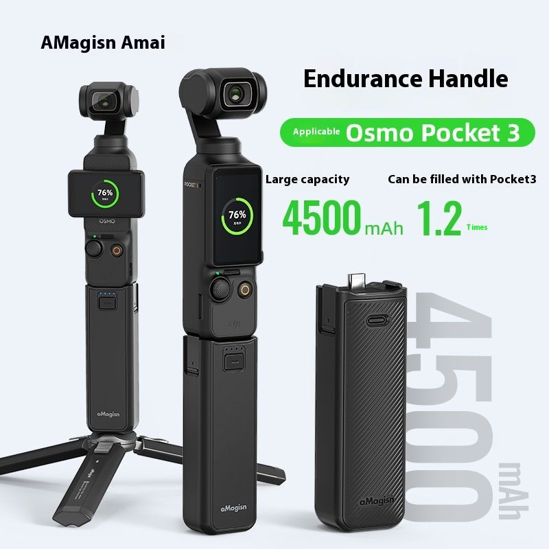 Battery Grip For DJI Osmo Pocket 3 Battery Handle Compatible with Most Action Cameras4500mAh Battery Grip For Longer Shooting (Black)