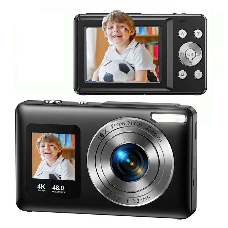 Black 4K HD Digital Camera Portable Dual Screen Travel Photography Kids & Girls Gift Student Camera (32G Memory Card Included)