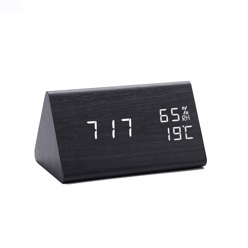 Black Color Wooden Triangular LED Alarm Clock Desktop Digital Thermometer And Electronic Clock