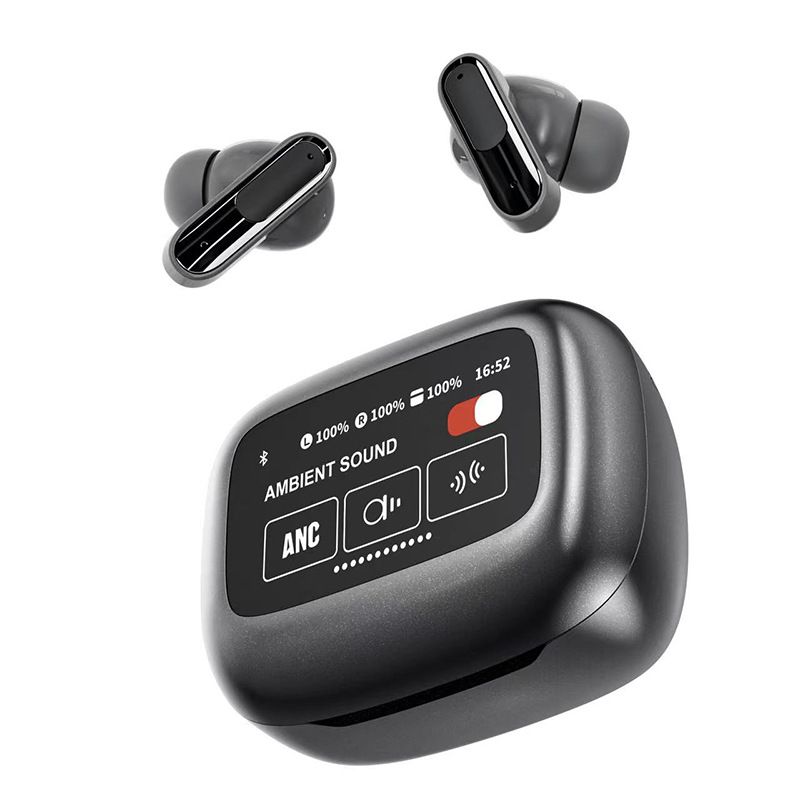 Black Wireless Waterproof Noise Reduction InEar Bluetooth Headset LED Touch Screen