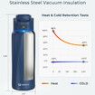 BOOST Smart Water Bottle with Reminder and Tracker - Double Wall Vacuum Insulated Stainless Steel, Wide Mouth 32 oz, Ideal Gift - Magnetite Blue