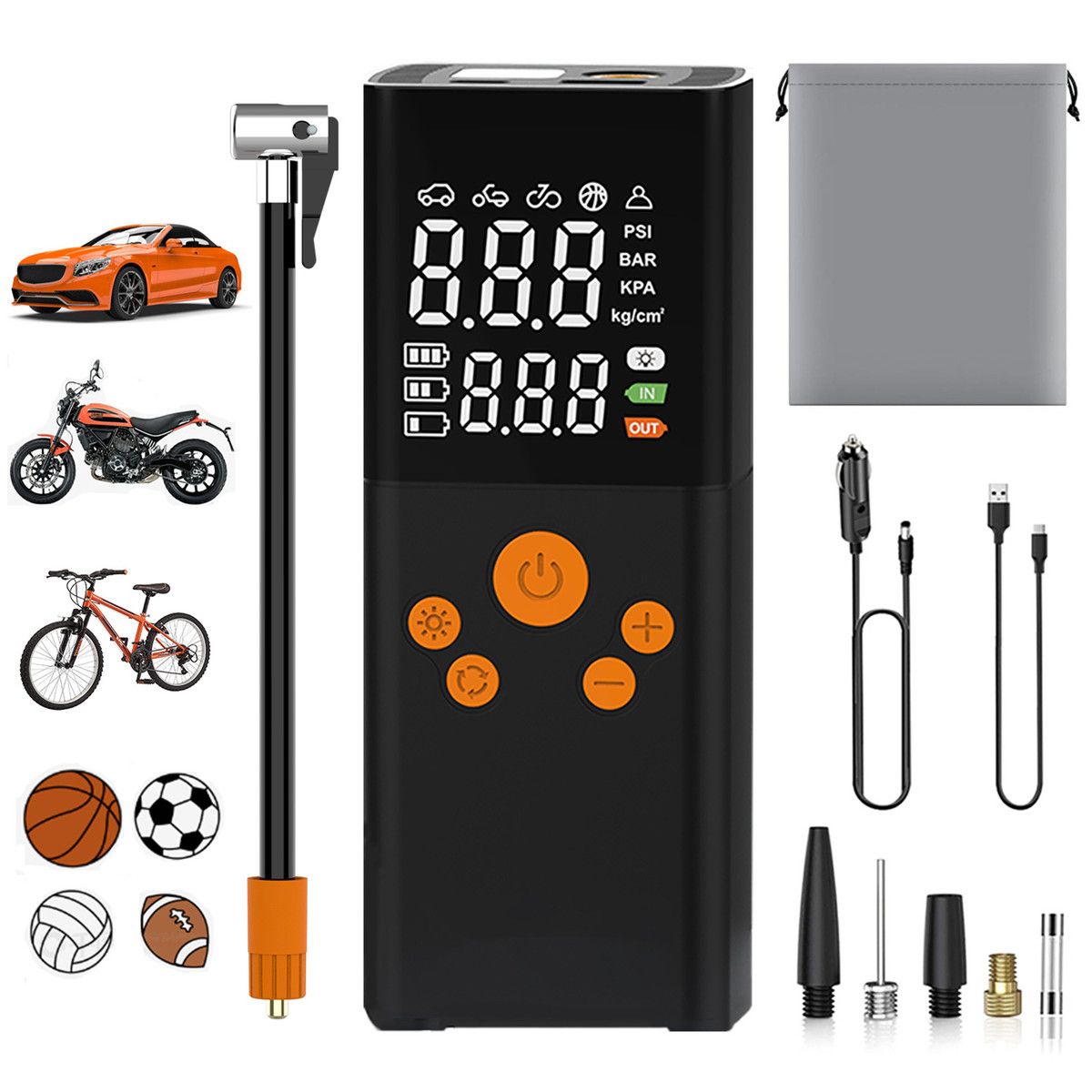 Car Tire Air Pump Portable,Cordless Tire Inflator Portable Air Compressor Dual Digital Screen Pressure Gauge,150PSI for Motorcycle Bike Car