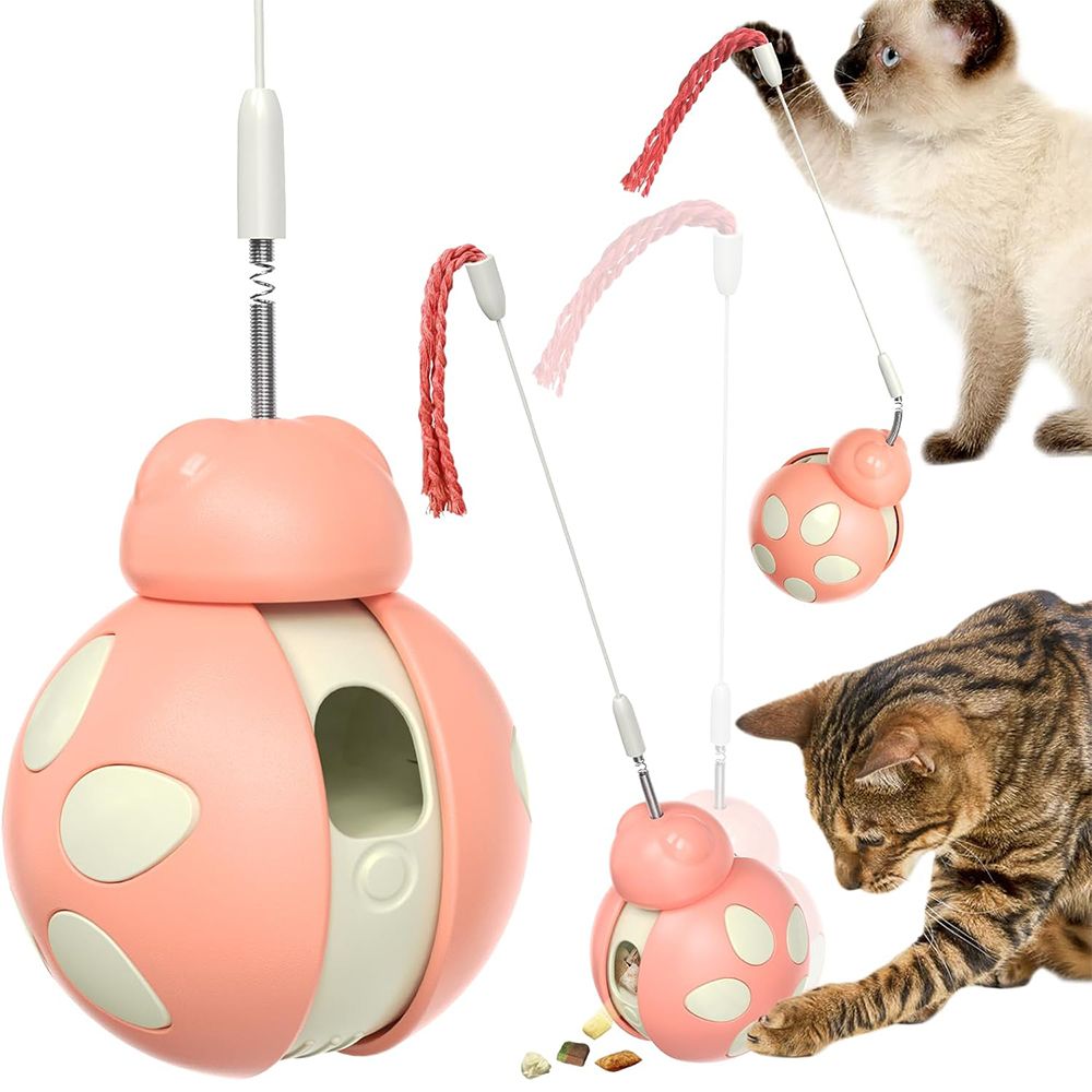 Cat Toys, Tumbler Rolling Cat Treat Dispenser with Teaser Wand, Cats Chase Toys for Nxiety Boredom Relie, Pink