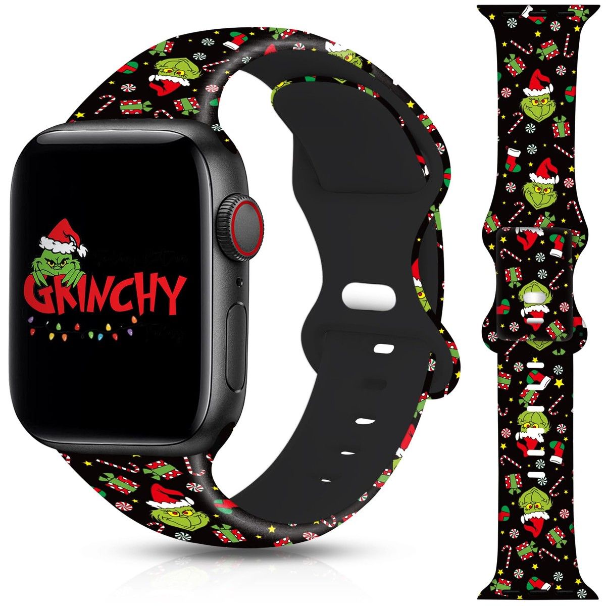 Christmas Grinch Apple Watch Band Compatible with Apple Watch Band 38mm 40mm 41mm iWatch SE Series 8 7 6 5 4 3 2 1,Soft Silicone Sport Replacement Strap Band for Girls (Size:38mm/40mm/41mm)