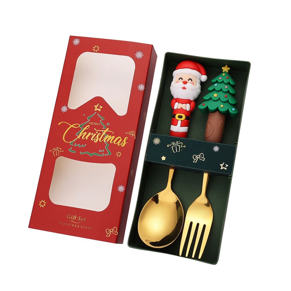 Christmas Tableware Set Stainless Metal Glitz Doll Coffee Dessert Spoon Fruit Fork Christmas Gifts Decor Santa Claus Decoration Spoon