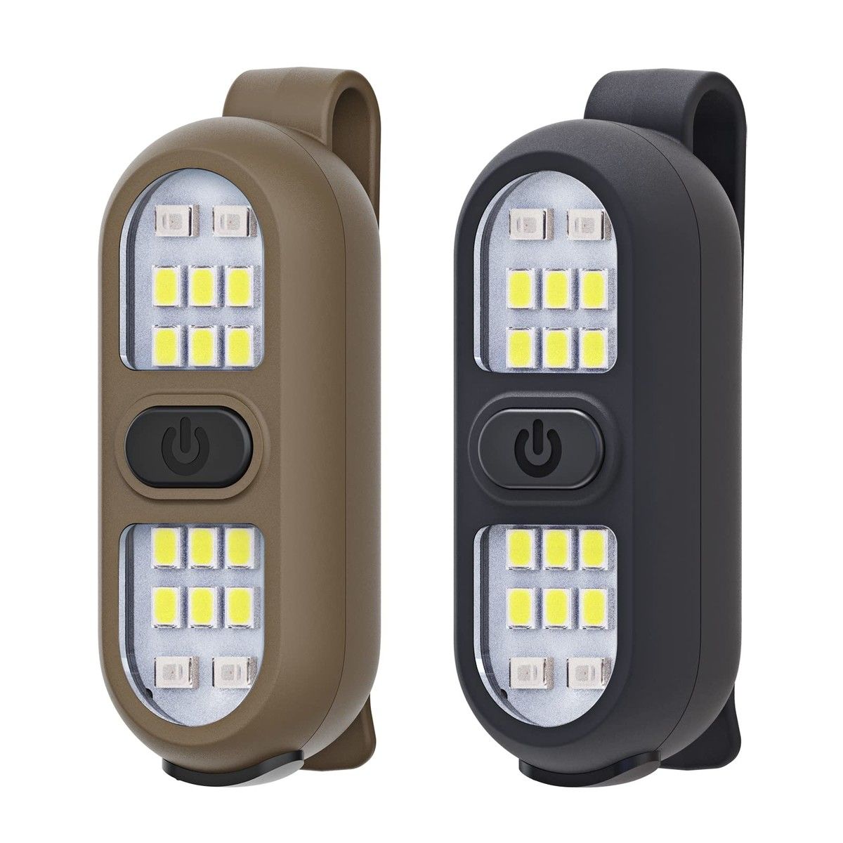 Clip on Flashlight Running Light Rechargeable LED Work Light Warning Flashing for Camping Hiking(2 Pack-Black+Khaki)