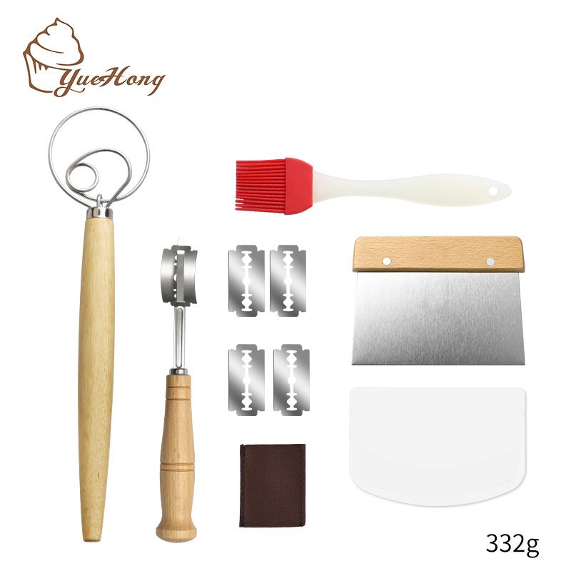 Complete Bread Making Kit Includes Danish dough whisk, bread lame, bench scraper, dough hook, and blades for effortlessly Bread backing