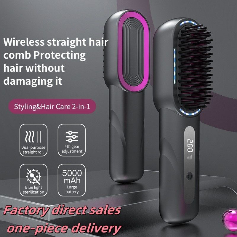 Cordless Straight Curly Hair Comb,Negative Ion Heated Hair Straightener,Rechargeable Anti-scalding Electric Hair Care Brushes Color Gray
