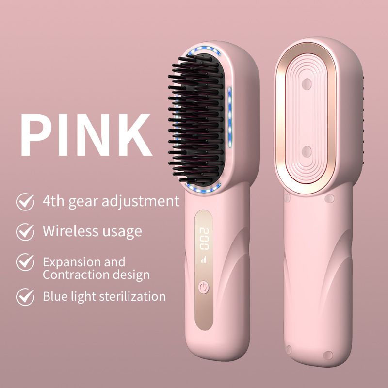 Cordless Straight Curly Hair Comb,Negative Ion Heated Hair Straightener,Rechargeable Anti-scalding Electric Hair Care Brushes Color Pink