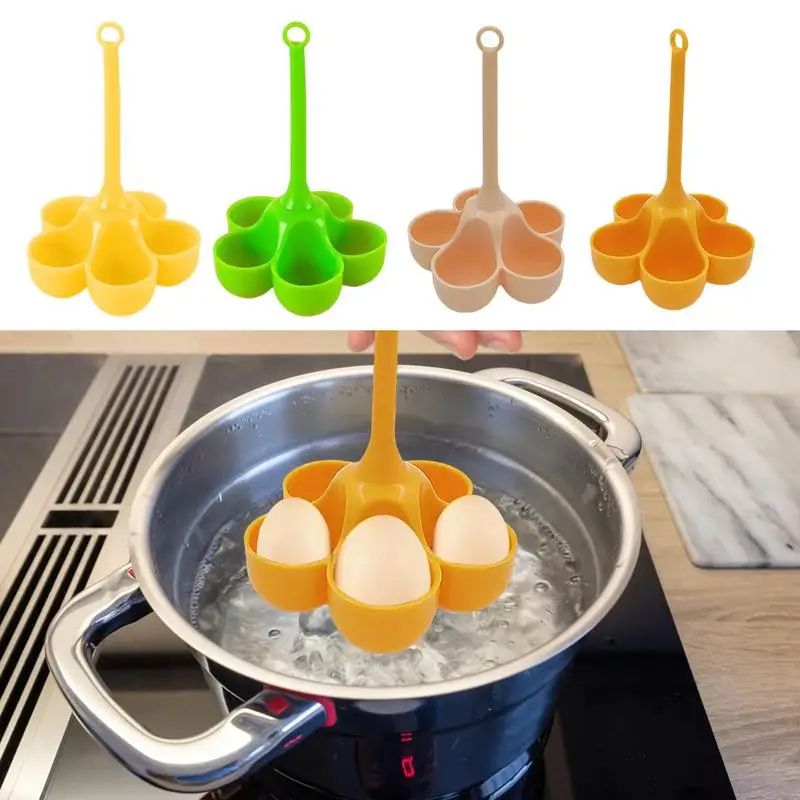 Egg Boiler Holder Heat-resistant Silicone Egg Steamer Tray With 5 Grids Eggs Poaching Boiling Cooker Rack Kitchen Egg Tools Color Orange