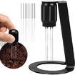 Espresso Coffee Stirrer with Stand 0.4mm 8 Prong Coffee Stirrer Distributor with Magnetic Design Portable Espresso Distributor Tool Stainless Steel Coffee Powder Needle Reusable