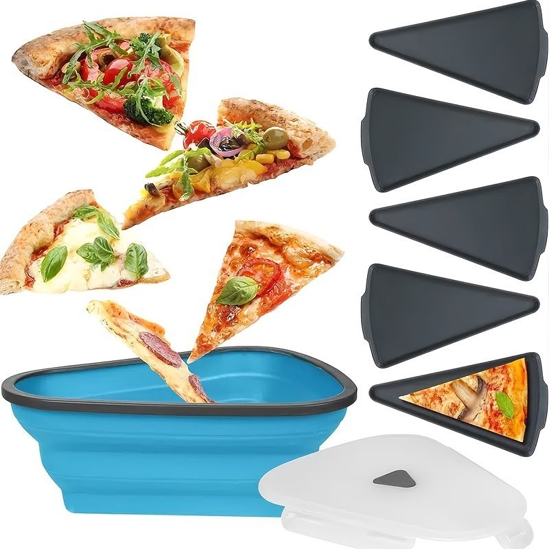 Foldable Silicone Pizza Storage Container Organize and Save Space, Adjustable Size, Microwave Dishwasher Safe (Blue)
