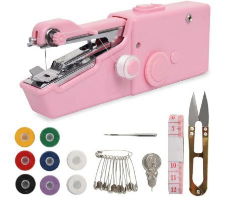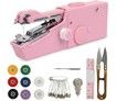 Handheld Sewing Machine, 22 Pcs Mini Portable Cordless Sewing, Household Quick Repairing Tool for Fabric Cloth Handicrafts Home Travel Use (Pink)