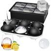 Ice Cube Trays (Set of 2), Sphere Ice Ball Maker with Lid & Large Square Ice Cube Maker for Whiskey, Cocktails and Homemade, Keep Drinks Chilled