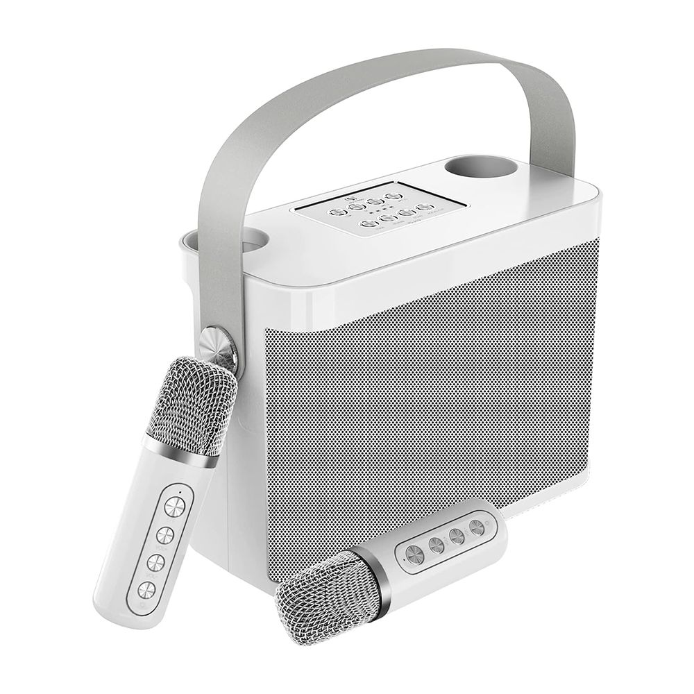 Karaoke Machine with 2 Wireless Microphones, Portable Bluetooth Karaoke PA Speaker System for Kids, with Carry Handle (White)