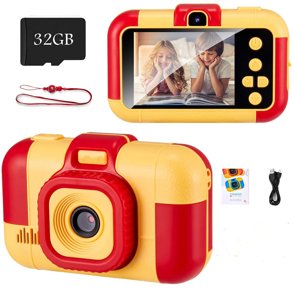Kids Digital Camera Video Camcorder Dual Lens 1080P 2.4 Inch HD with 32G Micro SD Card for Toddlers-Red