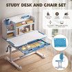 Kids Study Desk Chair Set Ergonomic School Student Table Height Adjustable Seat with Tilt Desktop Storage Shelf Drawer for Writing Drawing Learning