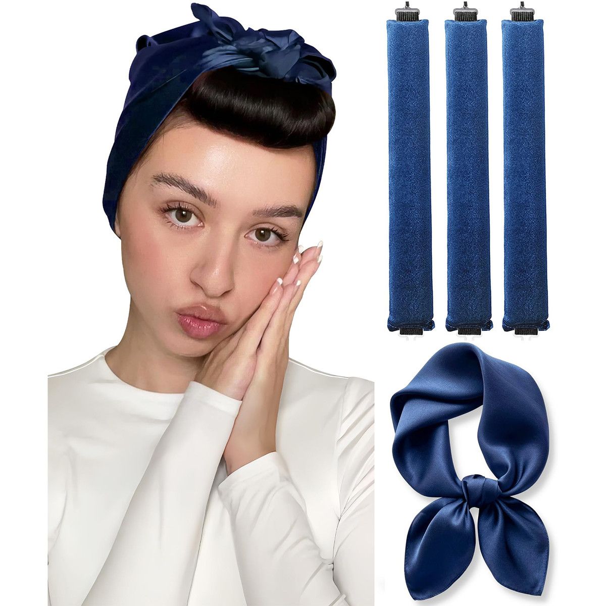 Little Velvet Overnight Curls Blowout 3 Rods Heatless Hair Curler to Sleep in Satin Heatless Curls No Heat Hair Rollers Navy