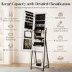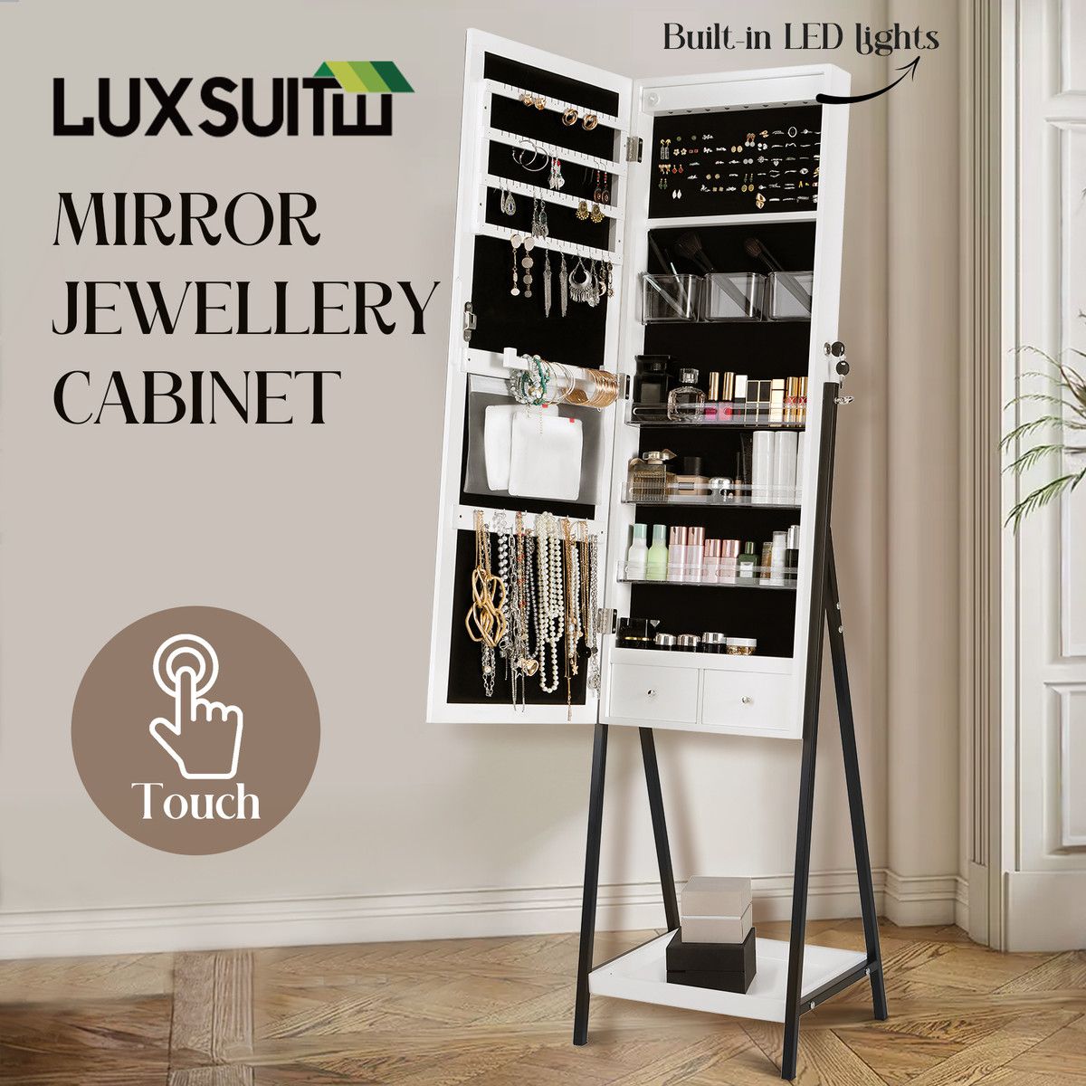 LUXSUITE LED Mirror Cabinet Jewellery Storage Shelf Organiser Lockable Floor Free Standing Armoire for Makeup Cosmetic Earring Necklace Ring 160cm