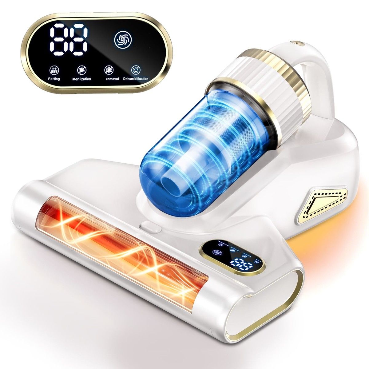 Mattress Vacuum Cleaner Cordless for Bed with UV Ultrasonic Brushroll Rotation,Double-Cup,LED Display,14Kpa Suction Handheld Vacuums(White)