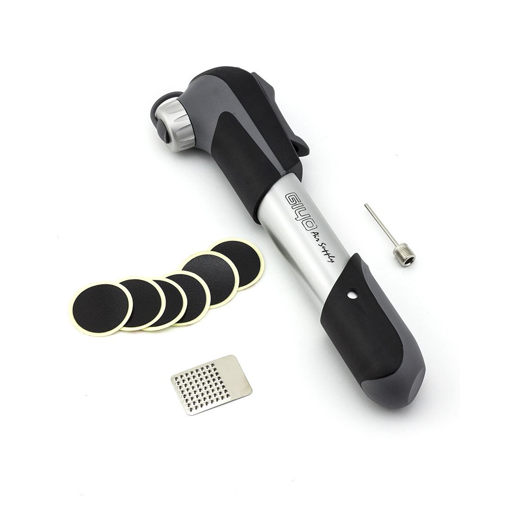 Mini Bike Pump & Glueless Puncture Repair Kit - Fits Presta & Schrader - 120 PSI - No Valve Changing Needed