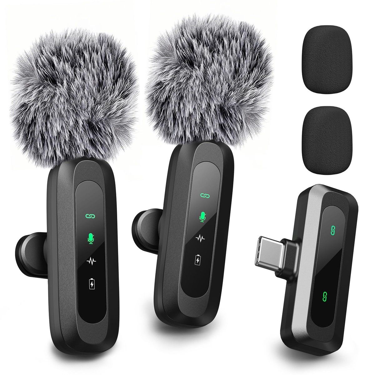 Mini Microphone for iPhone With LED Display,Bluetooth Mic,Wireless Lavalier Microphone with HD Noise Cancelling,Portable Lapel Mic,Type-C