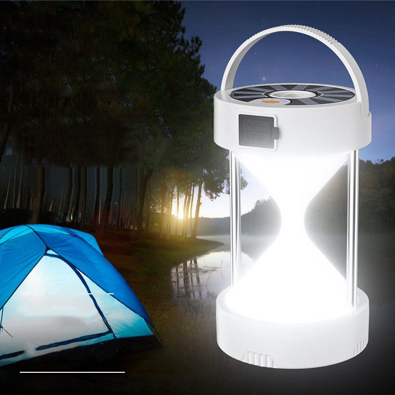 Multifunctional Camping Flashlight Rechargeable Solar Hourglass Shape Camping Light for Outdoor and Emergency-White