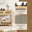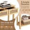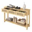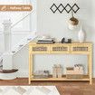 Narrow Console Table Hallway Entryway Sofa Couch Side End Accent TV Stand Home Entrance Living Bedroom Furniture Oak with Rattan Storage Drawers Shelf