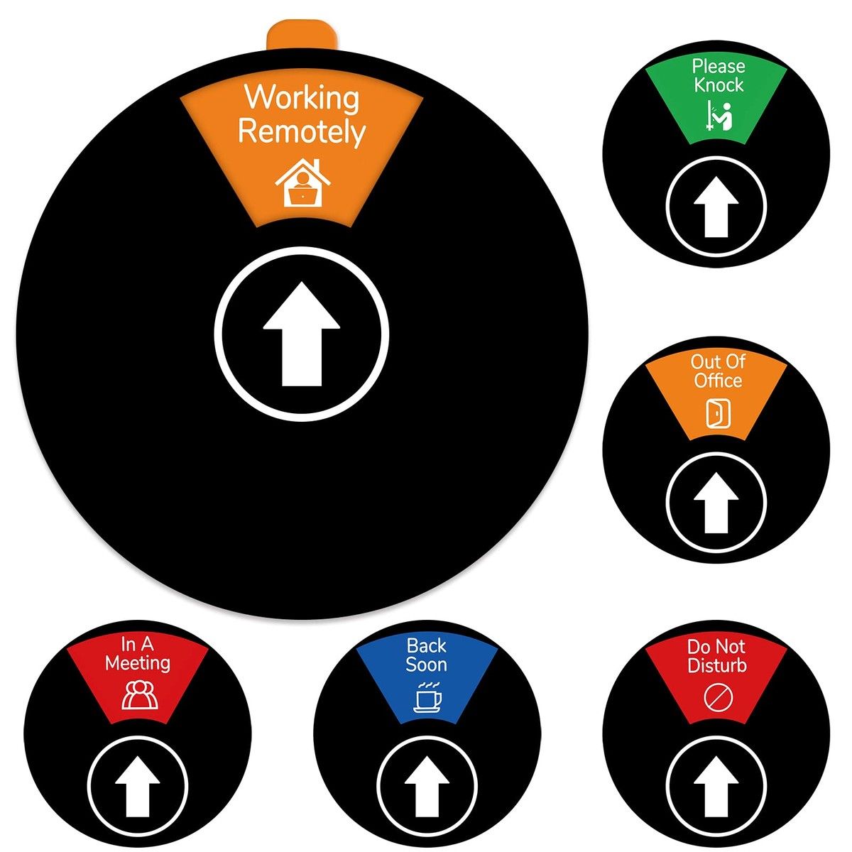 Office Door Privacy Sign, 6 Options, Do Not Disturb/Please Knock/Out of Office/In a Meeting/Come Back Soon/Working Remotely Color Black