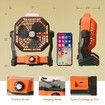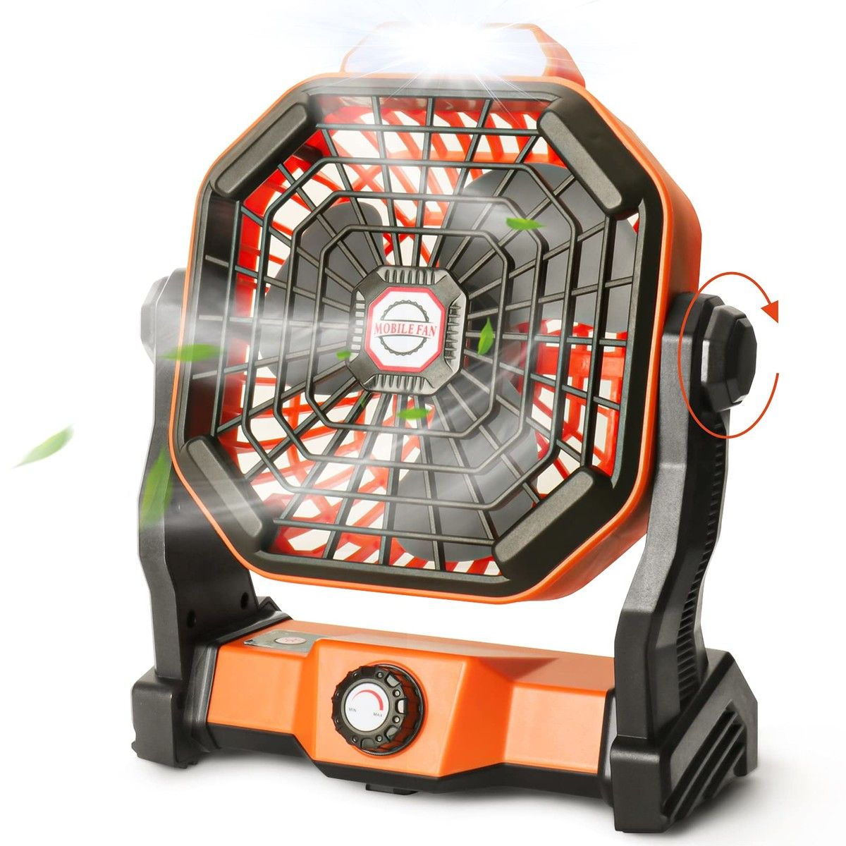 Orange Portable Desk Fan with LED Lantern, Small Rechargeable Quiet Camping Fan, Battery Operated Cooling Personal Table Fan with Hanging Hook